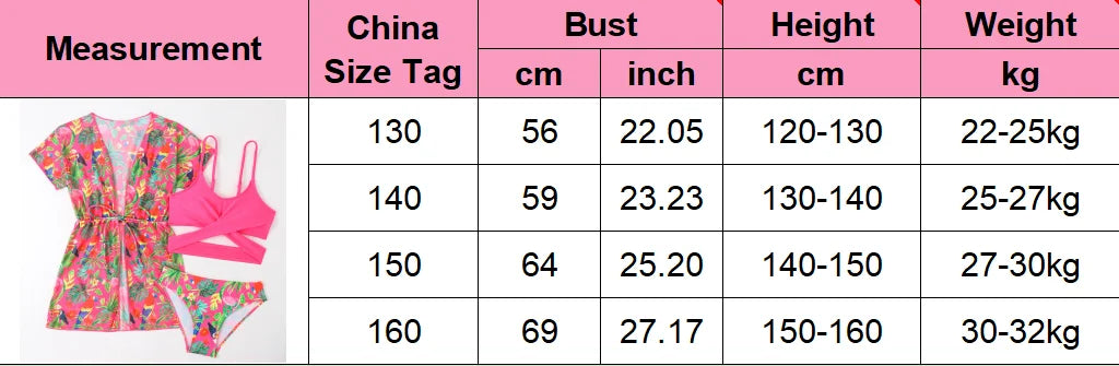 | CN Size Tag | Approx. US Size (Girls) | Suggested Height (cm) | Bust (cm) | Suggested Weight (kg) |