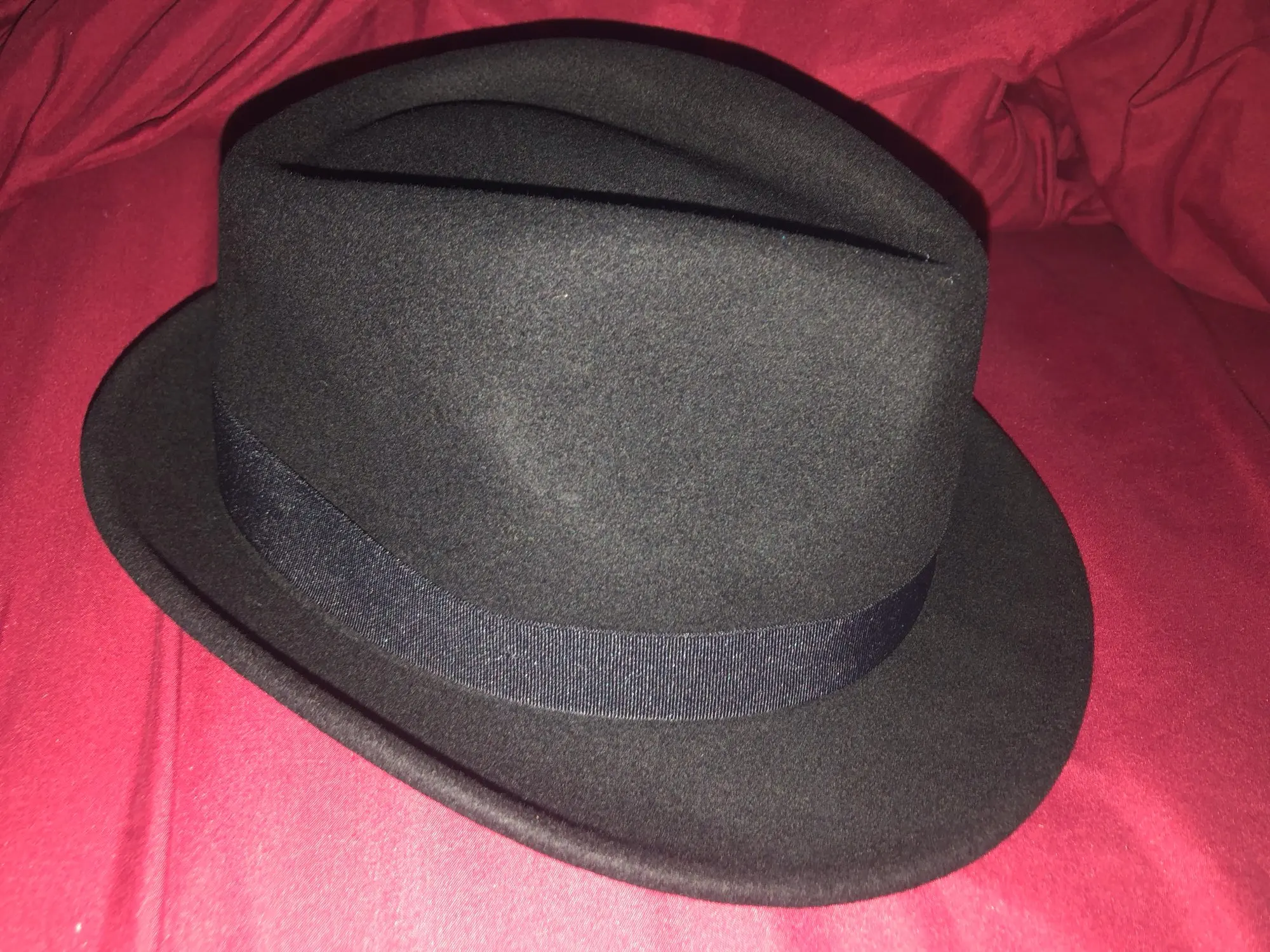 Approximate measurements: 57 cm head circumference, 10 cm crown height. This winter fedora is structured but can be lightly reshaped by hand after travel if needed.