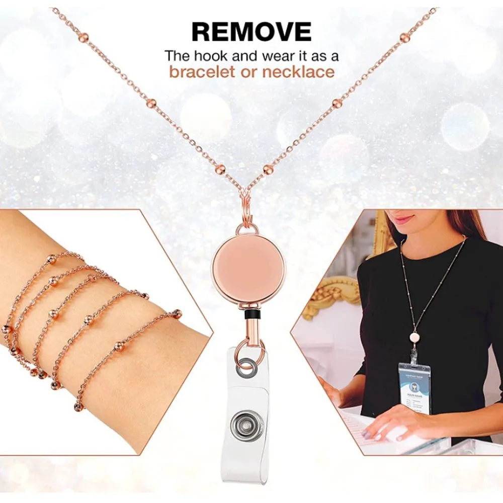 Stainless Steel Beaded Retractable Cruise Lanyard – Waterproof ID Badge Holder