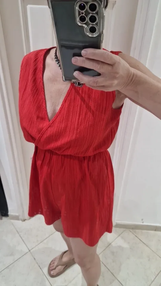 Hong Hermann A light and nice overall for the Israeli summer. The fabric looks like crepe paper, requires ironing after washing.