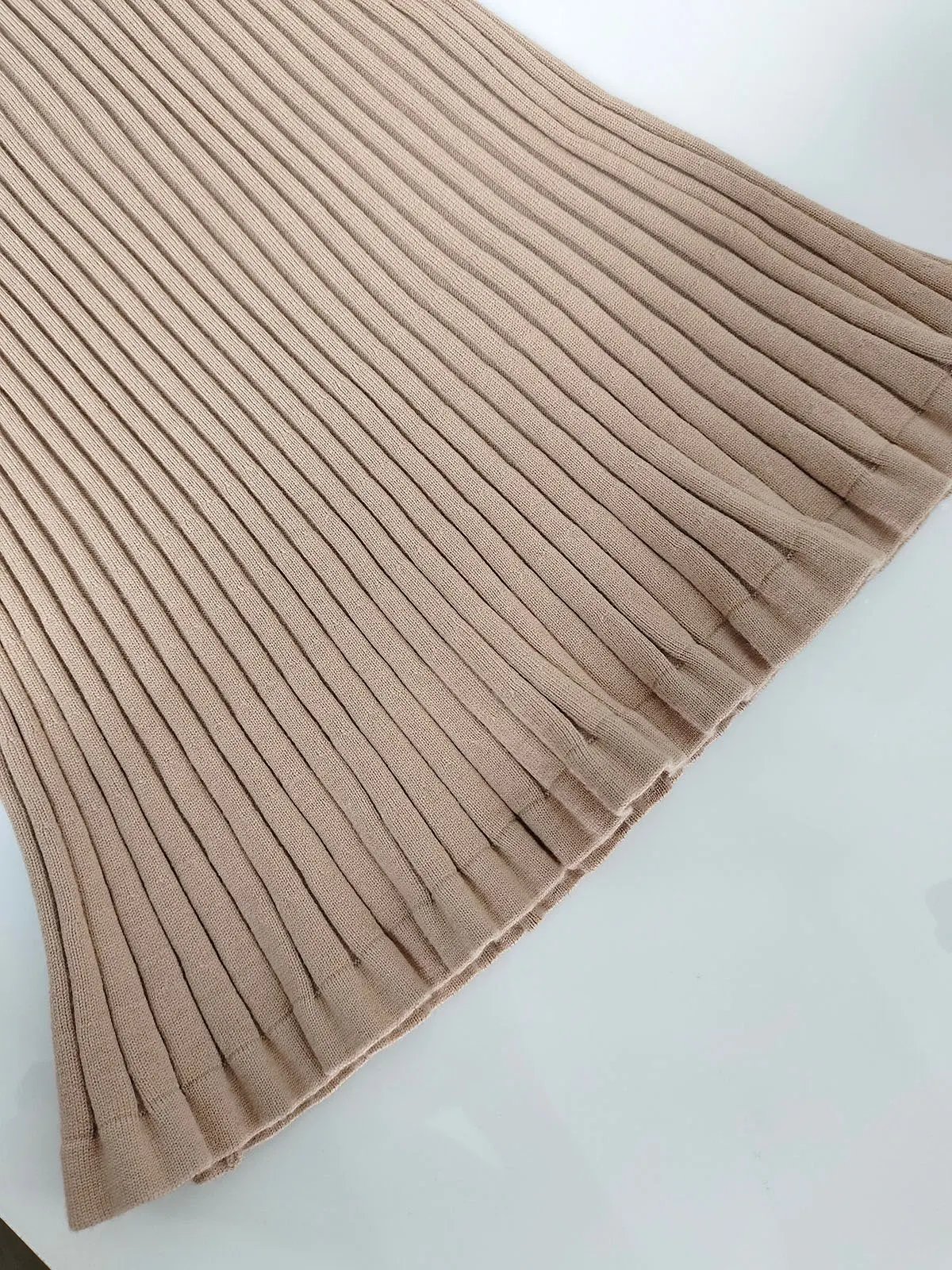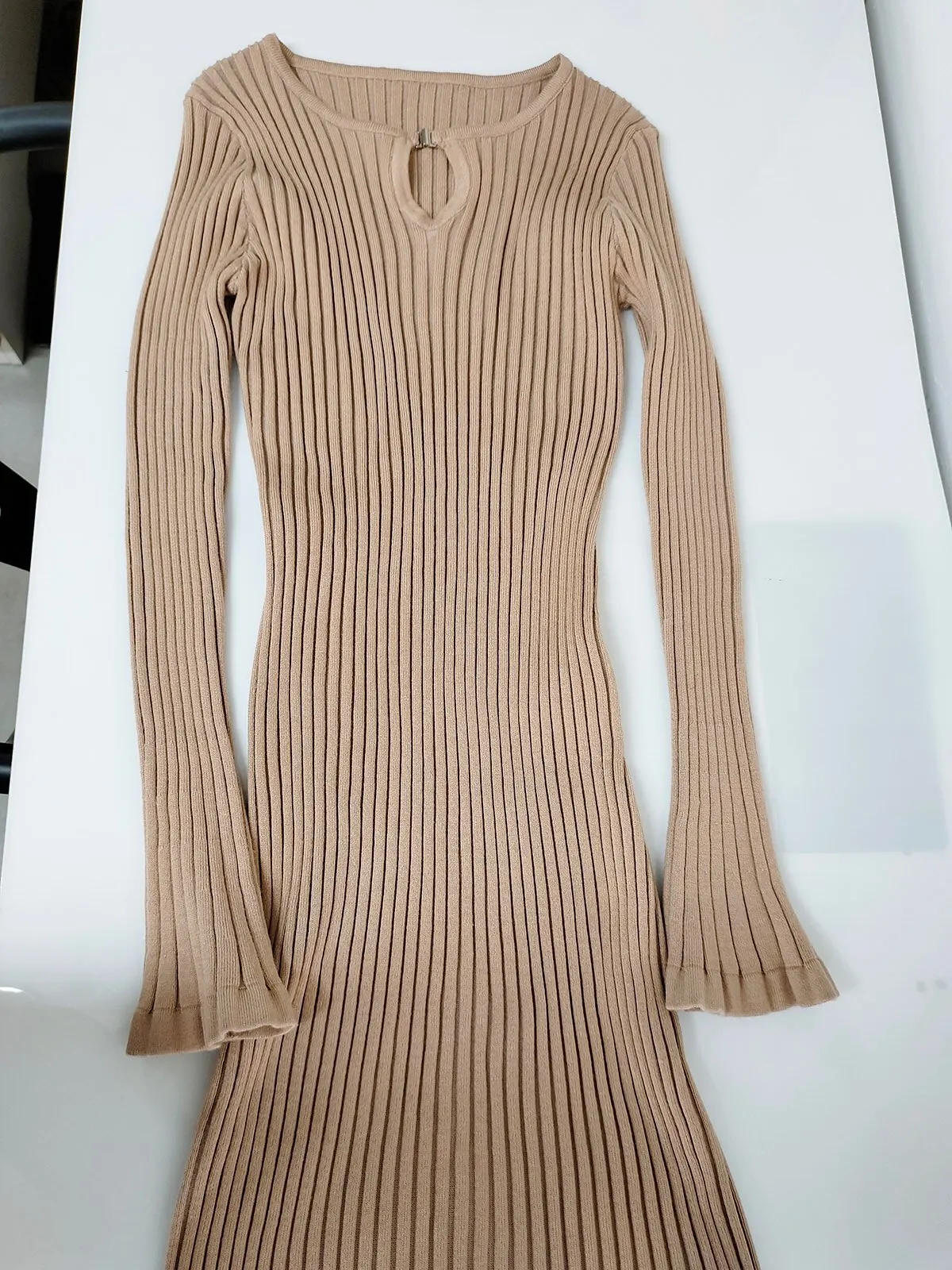 Women’s Rib-Knit Midi Dress – Long Sleeve, Flare Cuffs, Bodycon Fit