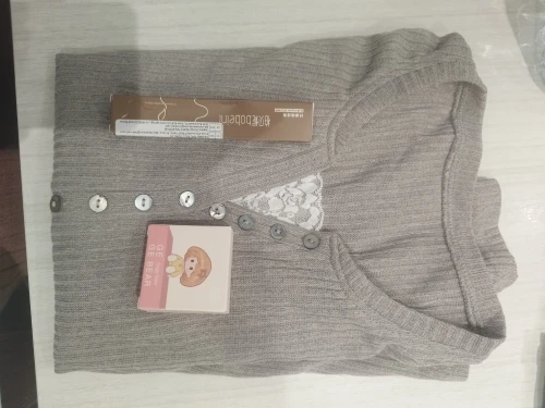 - Neckline: Button-front V-neck with lace inset