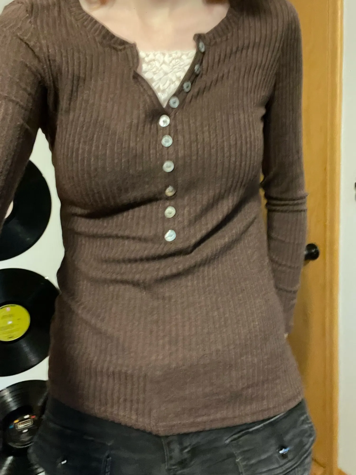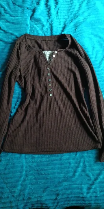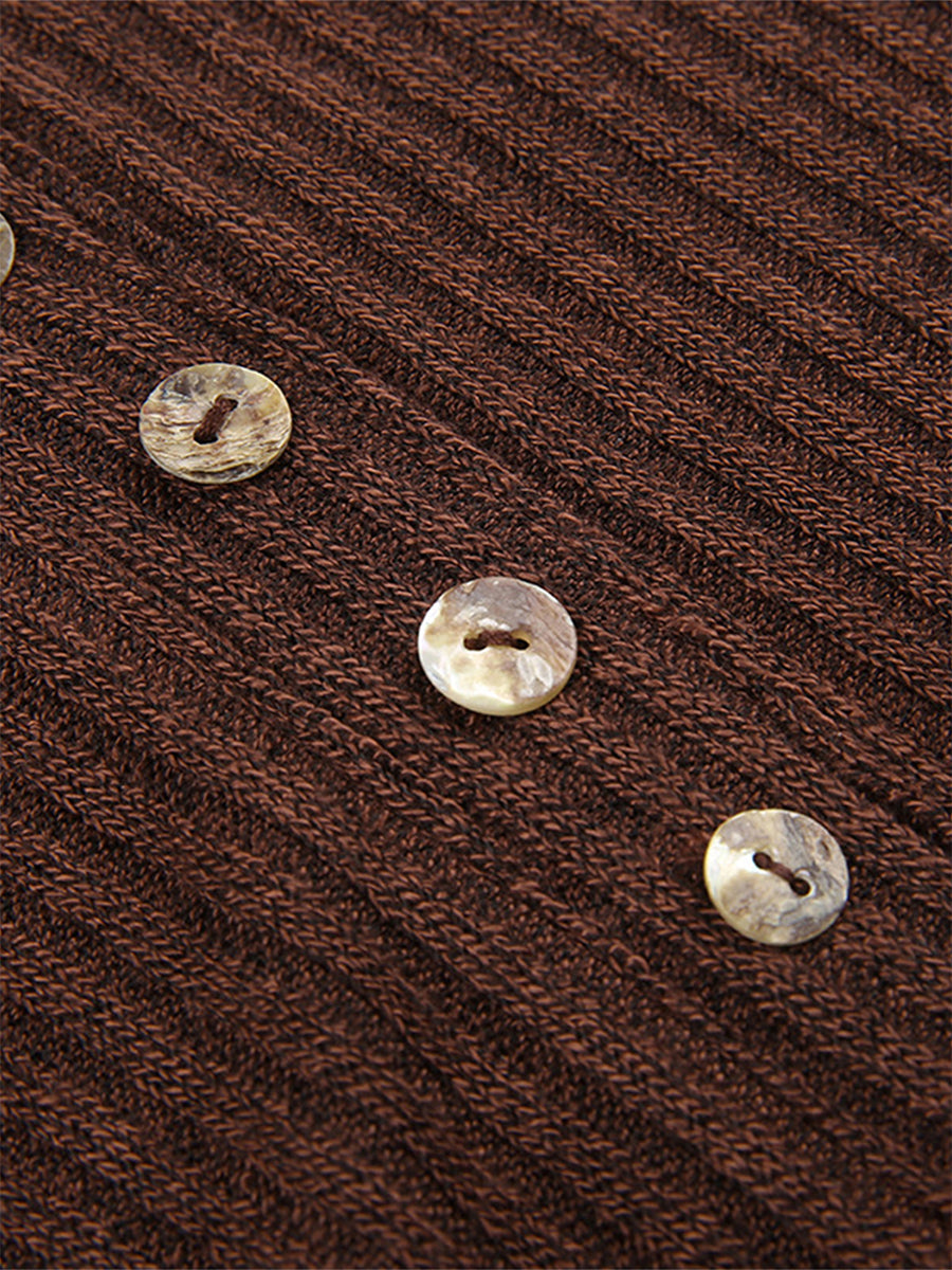 Women’s Ribbed Button-Front Knit Top – Slim Fit Long Sleeve
