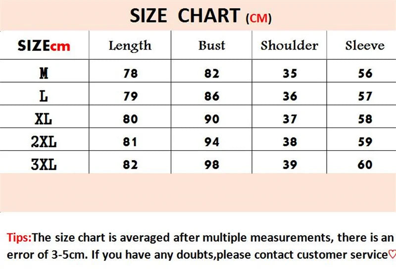 | Size (US) | Length | Bust | Shoulder | Sleeve |
