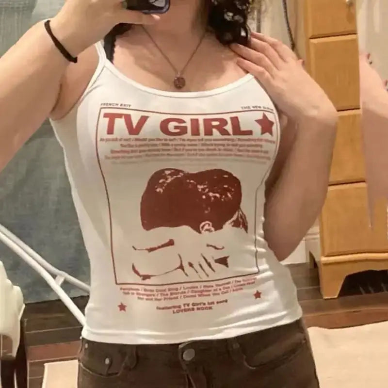 Y2K Printed Graphic Tank – Retro Grunge Crop Vest Top