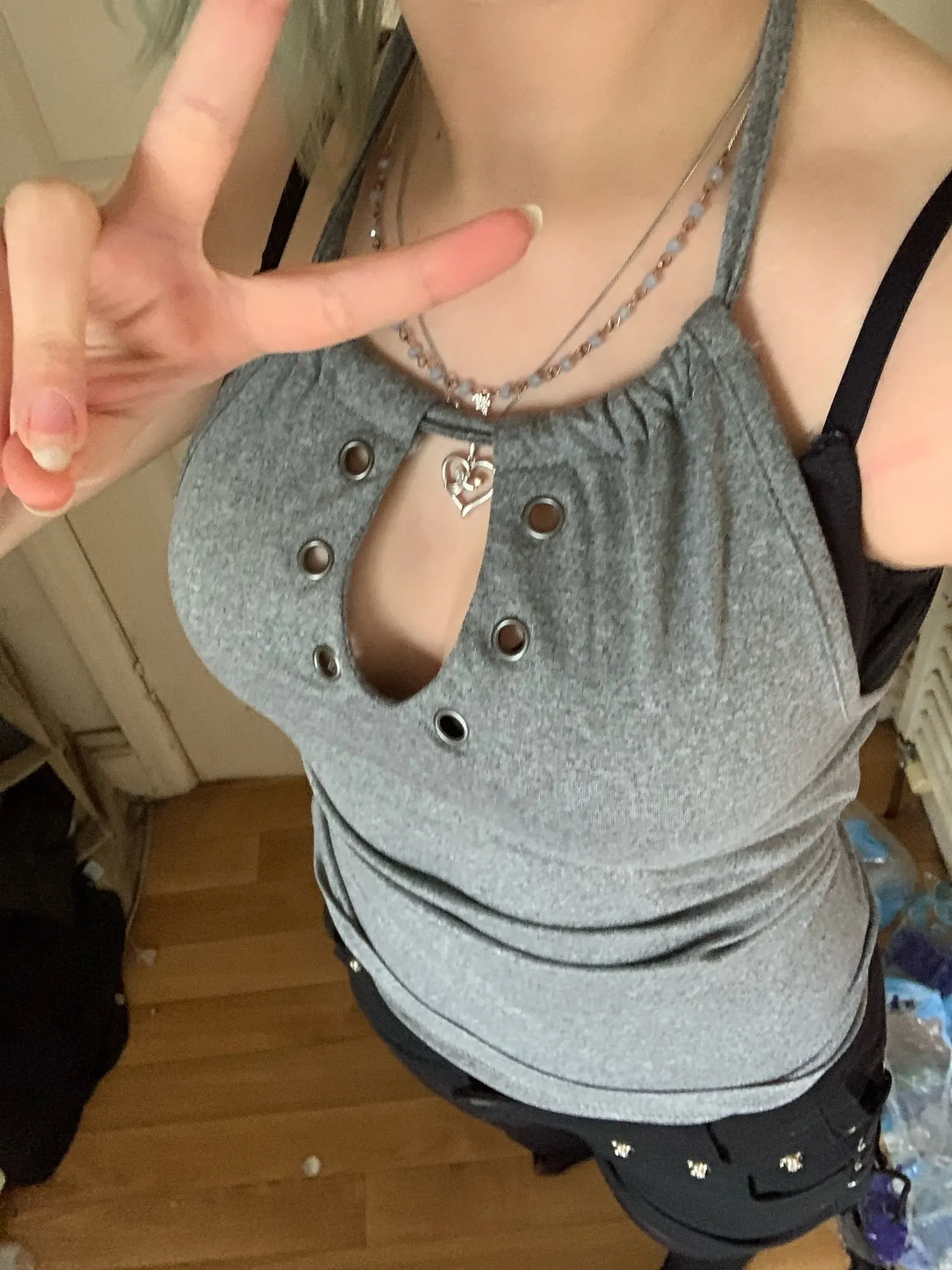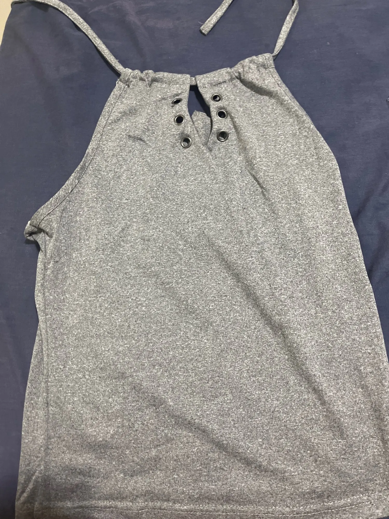 Y2K Ring-Halter Cami – Spicy Fit Knit Tank in Charcoal Gray